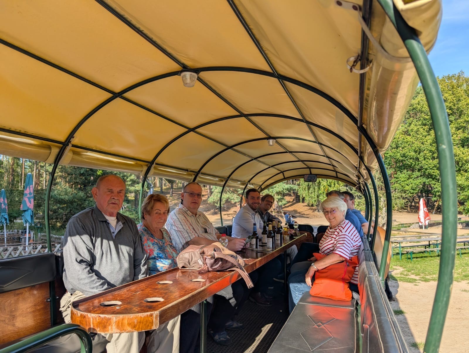 Bereits im Jahr 2024 fand ein gemeinsames Sommerfest statt. Im vergangenen Jahr absolvierten die Teilnehmer aus beiden Ortsvereinen eine historische Führung durch die Messingwerksiedlung Eberswalde. Bestandteil des diesjährigen Sommerfestes war neben dem Besuch im Wildpark Schorfheide, eine dort angebotene und buchbare Kremserfahrt. Eine gelungene Abwechslung von den ausgedehnten Spaziergängen im Wildpark, verbunden mit interessanten Erzählungen bzw. Erläuterungen zu den Gehegen und den ansässigen Tieren. Eine von vielen Möglichkeiten des regionalen Unternehmens, welche insbesondere für Kinder etwas Besonderes ist. Aber auch für lebensältere Besucherinnen und Besucher birgt dieses Angebot einige Vorteile. Zum einen kann man den langen sowie für Manche schwerfälligen Fußmarsch umgehen und zum anderen bietet die Kutsche Schatten und eine Transportmöglichkeit für Getränke und Essen.