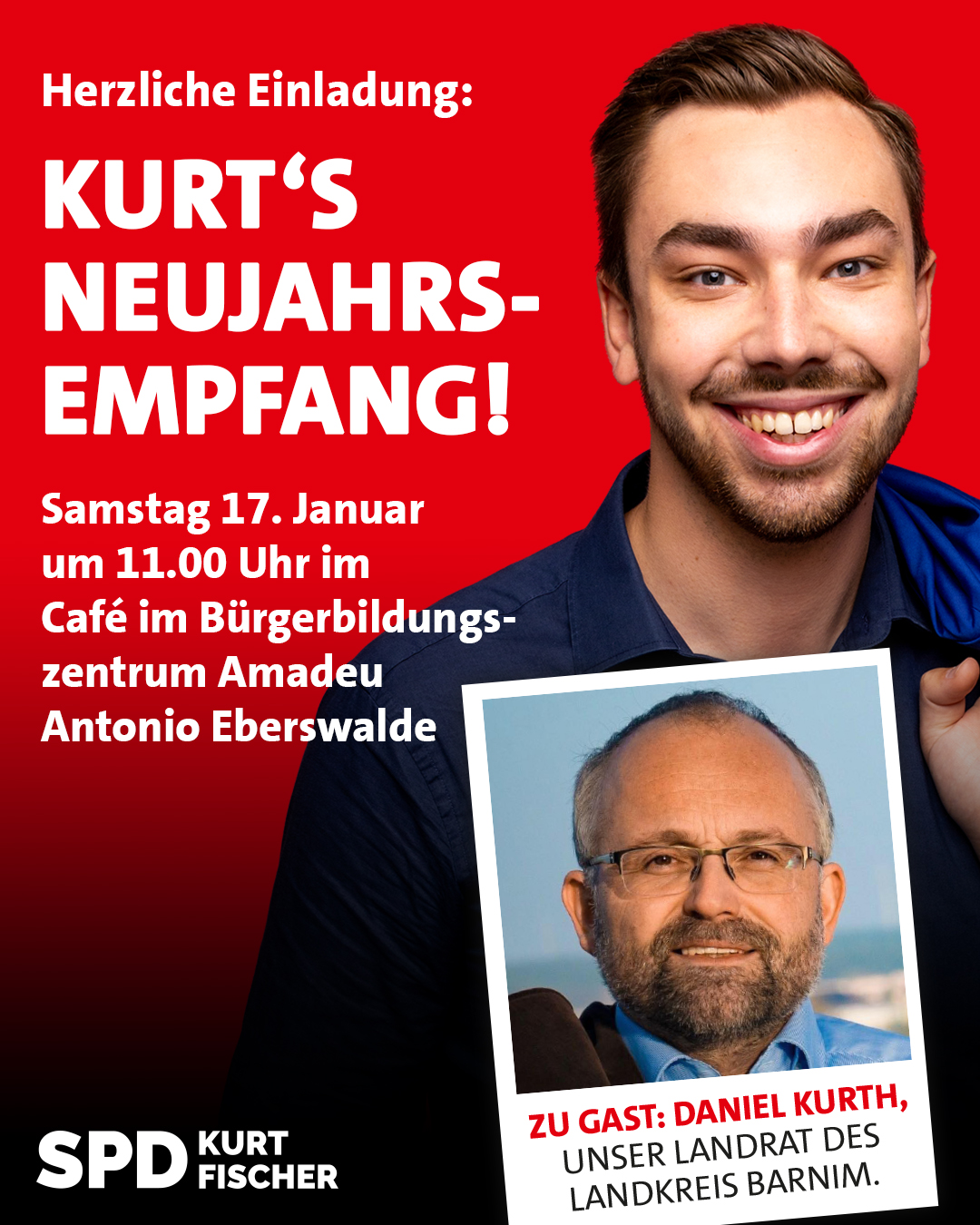 Barnim / Eberswalde – Seit September 2024 vertritt Kurt Fischer die Region Eberswalde, Joachimsthal und die Schorfheide als Abgeordneter im Brandenburger Landtag und setzt sich dort nach Kräften für die Belange seiner Heimat ein. Zum Start in das neue Jahr 2026 lädt er erneut alle interessierten Bürgerinnen und Bürger herzlich zu seinem zweiten Neujahrsempfang ein.